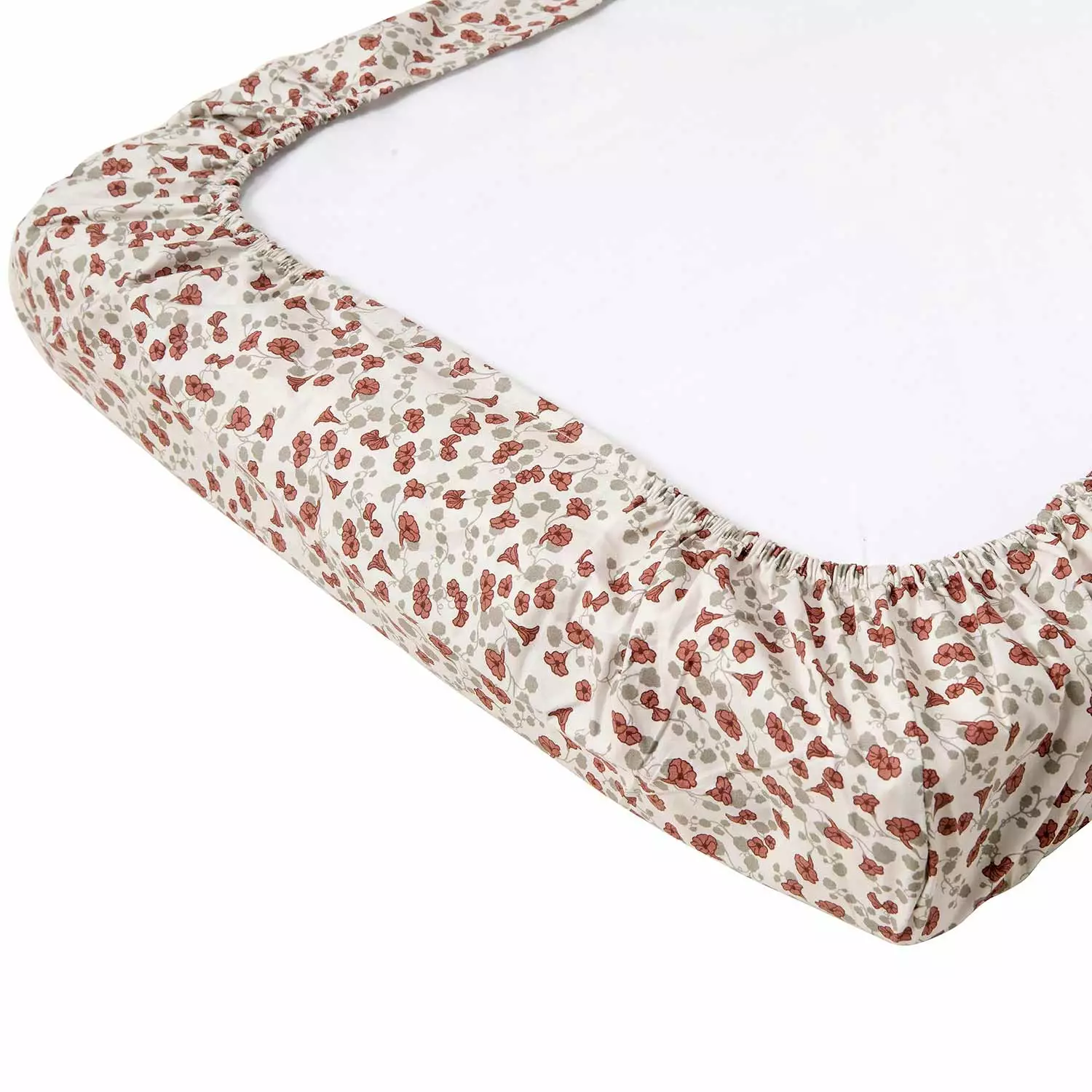 Royal Cress ist ein Überzug für die Wickelmatte von Garbo & Friends mit einem schönen Muster aus kleinen Blüten und Olivenblättern auf hellem Hintergrund. Die dezenten Farben und das lebendige Muster sorgen für ein Vintage-Feeling.
